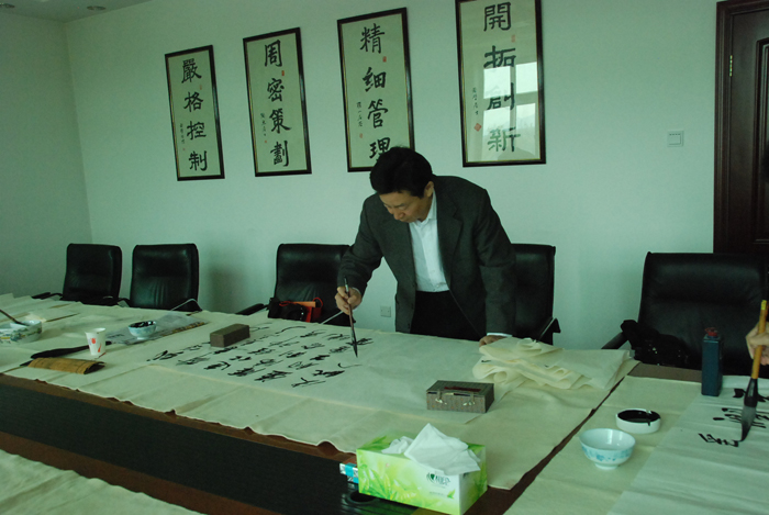 为弘扬传统文化,丰富员工业余生活,5月6日上午,多盈在线官网举办了首届书画艺术学习交流活动。本次活动邀请了中国书法家协会会员孟云飞博士、中国书法家协会理事张铜彦先生、中国书法家协会编辑出版委员会副主任王荣生教授、人民艺术家协会理事于瑛先生等国内知名书画大师,各位书画大师在活动现场进行了艺术创作表演,挥毫泼墨,交流技艺,为多盈在线官网留下了数十副墨宝,还对部分员工的书画作品进行了悉心指导。公司员工现场欣赏了书画大师的艺术创作,并聆听了有关书画艺术鉴赏知识的介绍,部分员工还在活动现场进行创作,听取书画大师的讲解示范和点评。