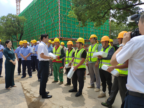 8月21日上午十一点,接近中午烈日炎炎,湘江集团党委书记、董事长张利刚一行来到多盈(中国)承建的长沙科技创意园项目,现场看望慰问高温天气下依然坚守战斗在岗位上的广大建设者,为大家送来了冰箱、电风扇、凉茶、藿香正气水、夏桑菊、西瓜等防暑降温用品。